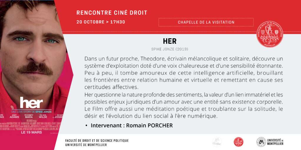 Her questionne la nature profonde des sentiments, la valeur d’un lien immatériel et les possibles enjeux juridiques d’un amour avec une entité sans existence corporelle.