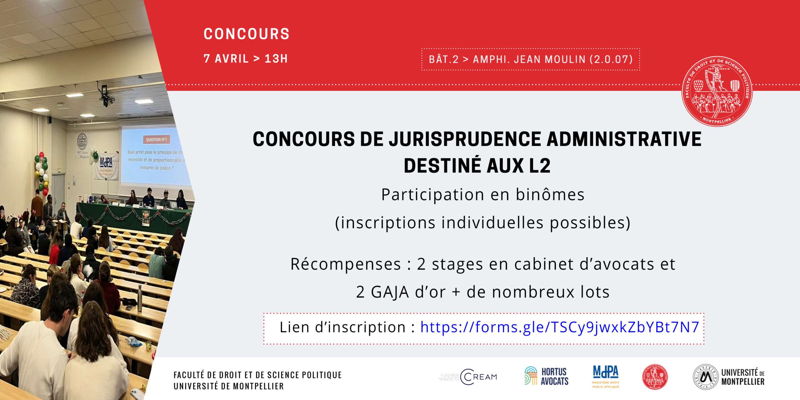 Récompenses : 2 stages en cabinet d’avocats et 2 GAJA d’or + de nombreux lots